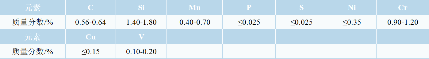 60Si2CrVA具有较高的抗拉强度和屈服强度,淬透性较高,热处理工艺性能好,但有回火脆性。因强度高,卷制弹簧后应及时进行消除内应力处理。