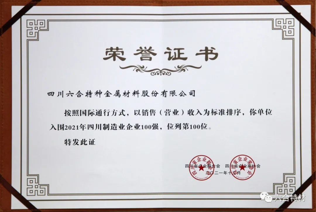 12月29日,2021四川企业100强发布会在成都召开,本次会议以“新征程 新使命 新作为:全力推进大企业高质量发展”为主题,发布2021年四川省综合、制造业、服务业百强以及数字经济企业榜单。太阳集团官网成功入围2021年四川制造业企业100强。