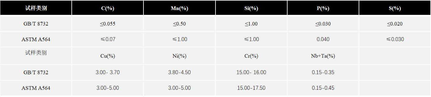 0Cr17Ni4Cu4Nb、17-4PH、X5CrNiCuNb16-4、630、S17400标准及技术条件: