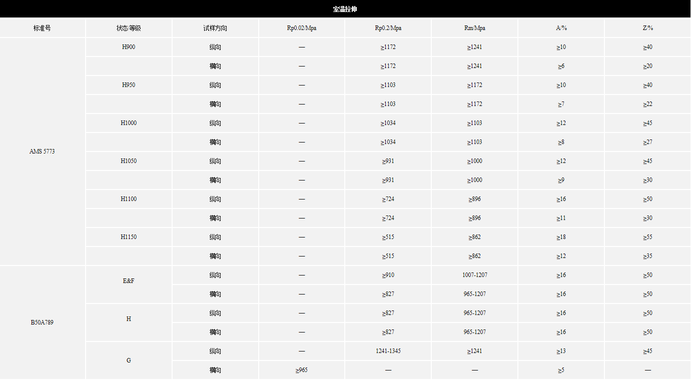 B50A789、AMS 5773、ASTM A564