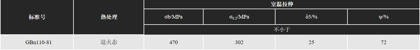 该合金主要用于制造要求在环境温度变化范围内尺寸高度精密仪表零件。