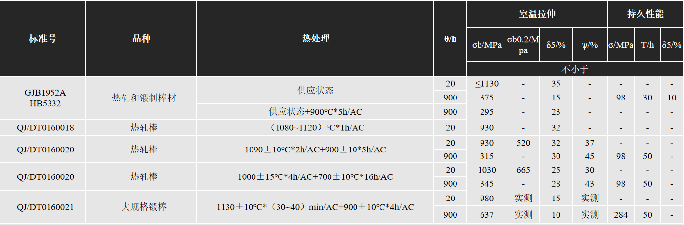 摘自HB/Z140、QJ/DT0160018、QJ/DT0160020、QJ/DT0160011各品种的热处理制度为: