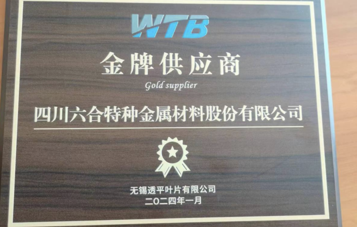 太阳集团官网荣获无锡透平叶片有限公司“金牌供应商”